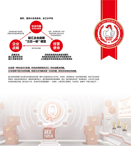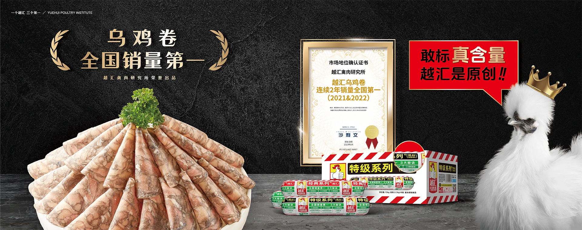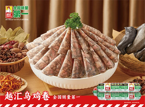 越汇位于河南省鹤壁市淇县高村镇,成立于2013年,是集研发、生产、销售、冷链为一体的现代化食品加工企业。公司是中国的小禽专家,专注于小禽调理肉制品的研发生产10余年,拥有20余项关键工艺技术。 “乌鸡卷”是越汇的拳头产品,全国销量第一。越汇是国内率先明确标识乌鸡含量、率先在国内推行无色素添加的乌鸡卷生产企业,率先在国内推行洁净包装,率先实现自检药残,率先建立乌鸡卷全程可追溯体系,率先实践天然菊粉、赤藓糖醇、豌豆蛋白,天然香料等健康智造理念,引领着中国乌鸡卷品类不断向前发展。 近年来,越汇又引进日本丰田生产管理方式,并与国内顶尖咨询机构华与华合作,发展速度惊人,是这两年冻品行业闪耀的新星。2024年1月1日,越汇入选得到罗振宇2024跨年演讲案例,被罗老师重点推介。
